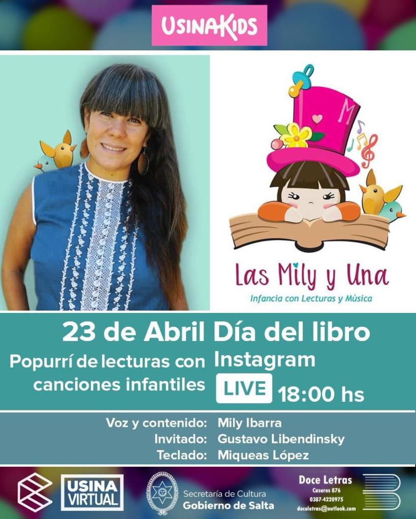 La Usina Cultural de Salta en conmemoración del Día Internacional del Libro lanzó su sección Usina Kids dirigido a los niños. A través de transmisiones en vivo en la plataforma Instagram se llevaron a cabo lecturas en la voz de Mily Ibarra, creadora del Proyecto La Mily y Una – Infancia con Lecturas y Música. Con una trayectoria de más de 12 años generando propuestas culturales en diferentes formatos: talleres, conciertos musicales destinados a la infancia, a docentes y trabajadores en relación con los niños y niñas.
