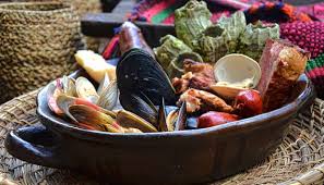 - Para servir el curanto: sacar las capas y colocar en distintas fuentes. Se empieza comiendo la carne, queso y verduras. Luego el caldo en tazas pequeñas, después el pescado y los mariscos.