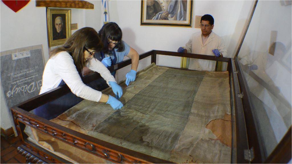 Respuesta: Según estudios realizados sobre muestras de la bandera original, para teñir la seda (ya que descubrieron también el material)se utilizó el índigo(indigotina)un colorante natural que tiene un pigmento azul que produce la savia de la planta Isatis tinctoria, y que también tiene indirubina, un químico producido por el sistema bacteriano de la planta. Se combinaron técnicas como análisis químicos, fluorescencia de rayos X y espectroscopía Raman.