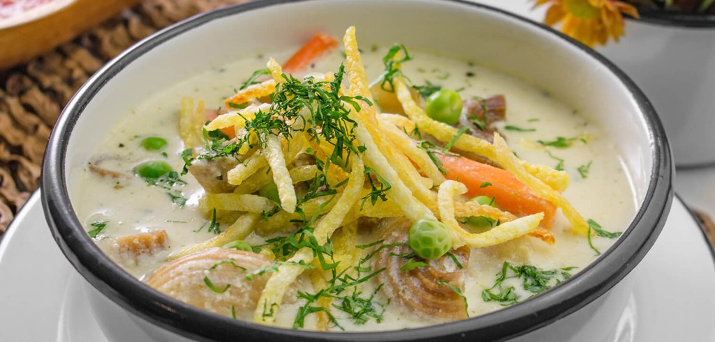 ● Dejar cocer hasta que la carne se ablande. Luego agregar dos papas en cubos y las arvejas.