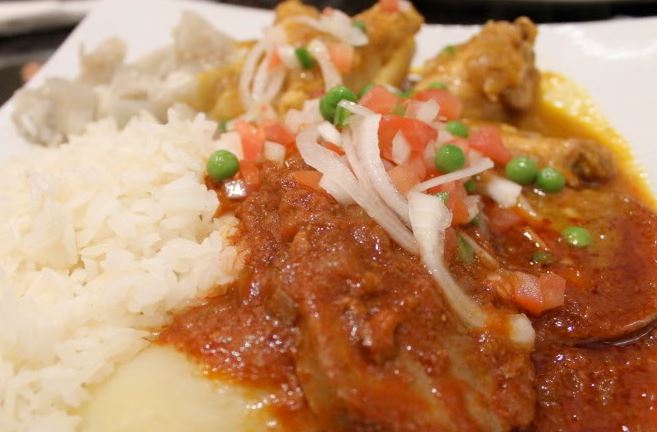 Probar el sabor, si gustan agregar ají molido emplatar colocando las papas hervidas primero, luego las salsa y la carne, a un costado el arroz cocido seco y condimentado, decorar con perejil bien picadito.