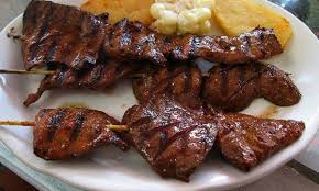 Los españoles acostumbraban a macerar la carne de res en vino y otros condimentos. Luego la freían y la ensartaban en palitos a modo de brochetas.