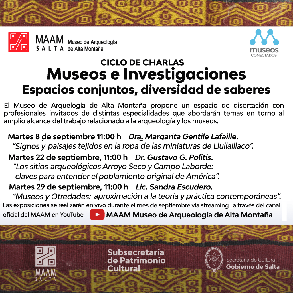Las exposiciones gratuitas se realizarán en vivo durante septiembre, vía streaming, a través del Canal de YouTube del MAAM (podrá verlo haciendo clic en el siguiente enlace).