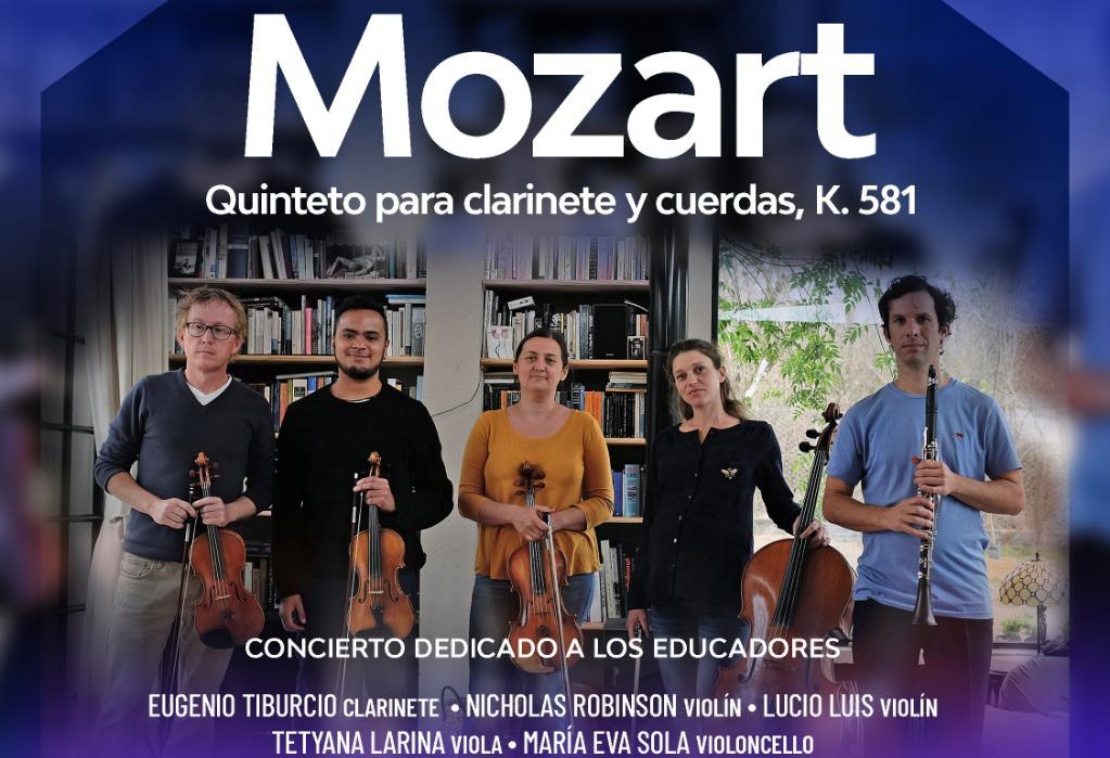 La propuesta es reencontrarse con el público en el ciclo virtual “La Orquesta en tu Casa”. Este viernes 18, a las 20 hs, por Facebook Live se podrá disfrutar de un Quinteto de Clarinete y Cuerdas de Mozart. Quienes serán protagonistas de la velada son Eugenio Tiburcio en clarinete, Nicholas Robinson en violín, Lucio Luis en violín, Tetyana Larina en viola, y María Eva Sola en violonchelo, quienes interpretarán el Quinteto para clarinete y cuerdas en La Mayor, K. 581.