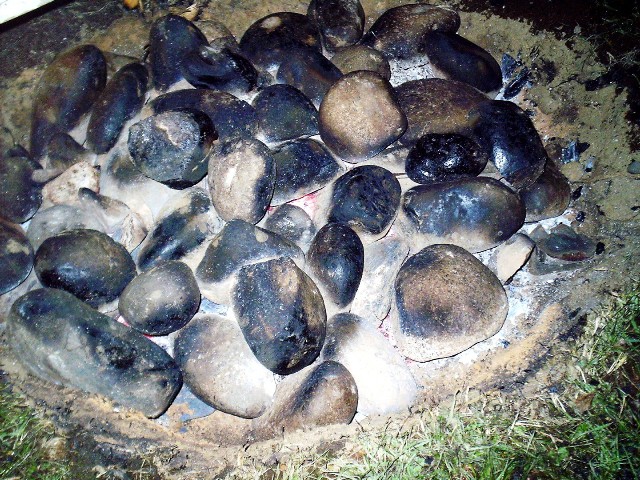 Los indios hacen con ellas, colocándolas una sobre otra, un horno, en el suelo, que ahondan como diez centímetros de la superficie, y en cuyo centro encienden una fogata que atizan para dar intensidad al fuego, a fin de caldear las piedras.