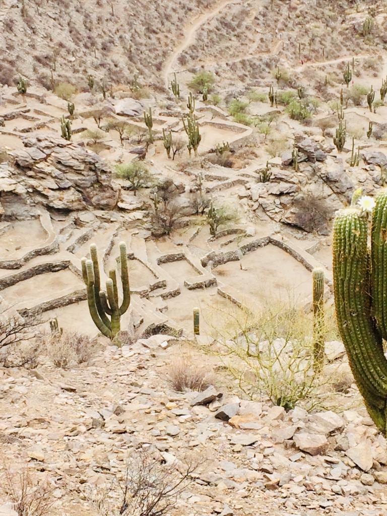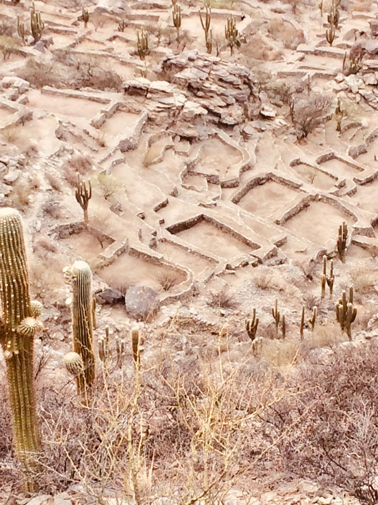 Desde arriba todo parece un mapa antiguo, con líneas que van formando caminos, y uno que resalta entre todos, acaso será ese por donde los indios partieron caminando ???. Piedra gris, cardones en flor, caminitos bordeando cornisas, balcones con improvisados bancos de piedra para mirar todo, llamas y alpacas apareciendo en el camino, colgadas de la montaña, su montaña, sus ruinas, su ciudad sagrada.