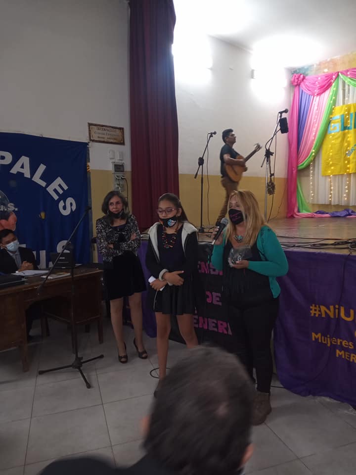 Mirta Mamani recibe el reconocimiento Juana Manuela.
