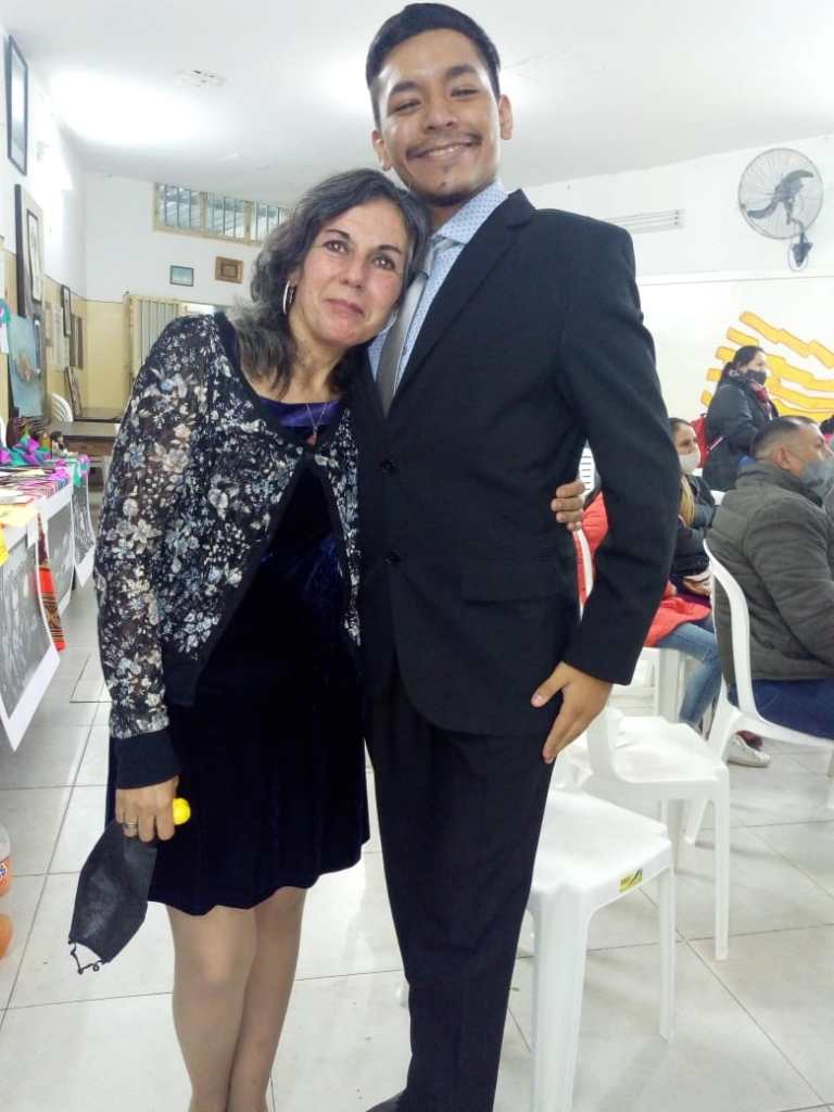 Tiziana Saraí Contreras recibe el reconocimiento de manos de Laura Romano.