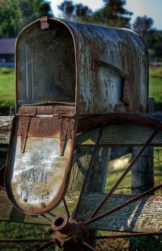 Viejo buzón de cartas, gastado por el tiempo, con manchas de óxido