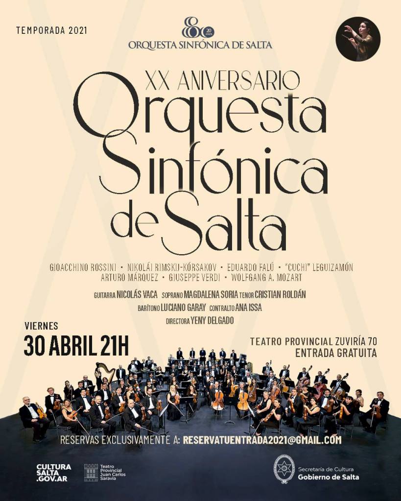 Este viernes 30 de abril en el Teatro Provincial a partir de las 21:00 horas se llevará a cabo el festejo del 20° aniversario de la Orquesta Sinfónica de Salta. Podrán disfrutar de un momento agradable y de buena música, uno de los artistas invitados es nuestro amigo Tertuliano Nicolas Vaca.
