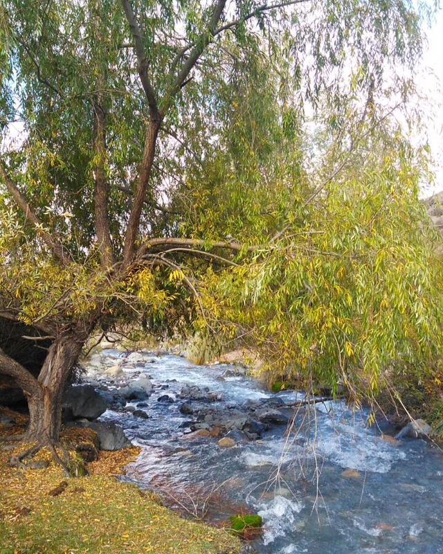 El río de agua heladísima baja a borbotones desde las montañas y trae agüita de los deshielos. Para cruzarlo tenes que agarrarte fuerte y ayudarte con las piedras enormes que vas a ir pisando, abrazando, necesitando. Así como la vida, las piedras nos hacen fuertes, gladiadores, hermosos.