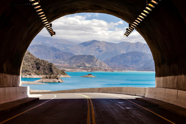 El espejo celeste del dique se puede ver desde lejos, y también podrás ver algún que otro cóndor sobrevolando estos cielos azules profundos.