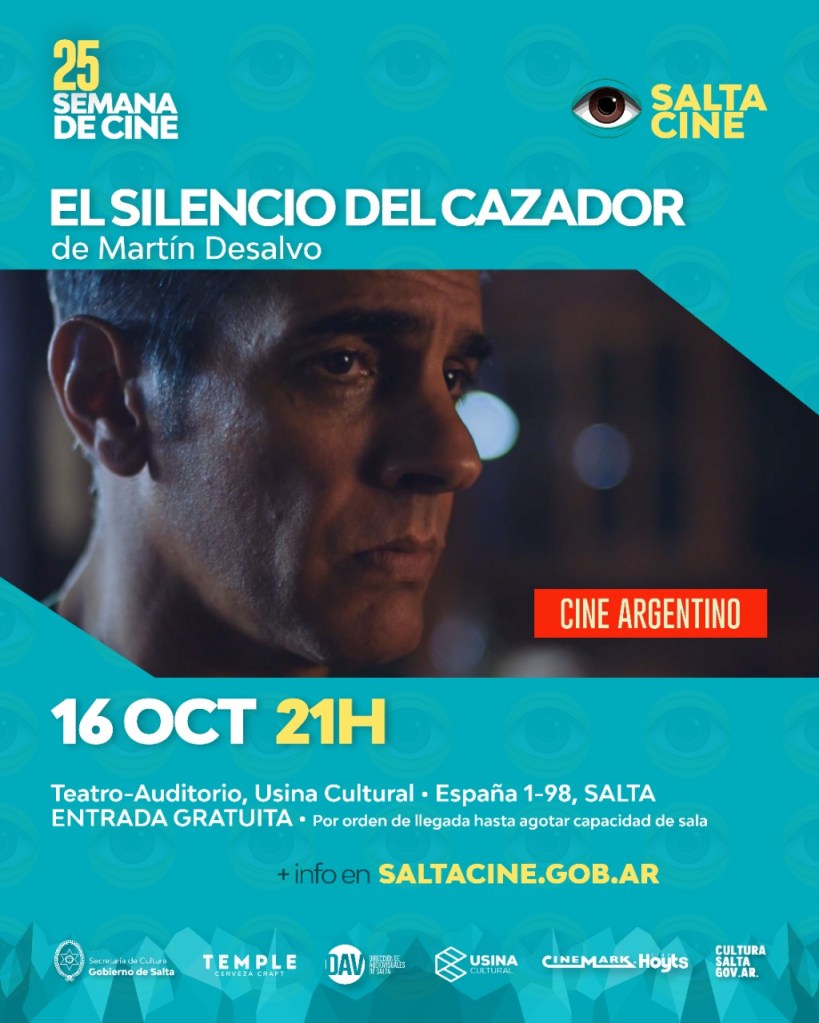 La Película Apertura se proyectará el sábado 16, a las 21 hs, en el Teatro de la Usina Cultural, y será El silencio del cazador de Martín Desalvo, con el protagónico de Pablo Echarri.