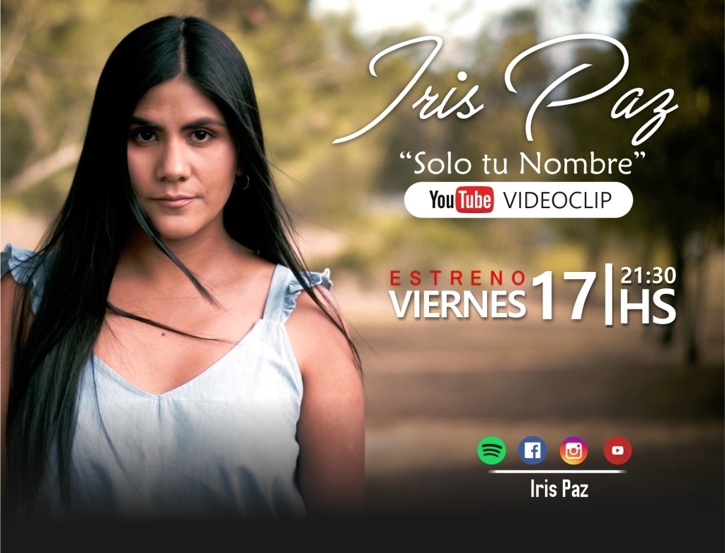Iris Paz estrena este viernes 17 de diciembre a las 21:30, » Solo tu nombre», su segundo videoclip. La salteña sigue dando a conocer el amplio repertorio de su primer trabajo discográfico » DE LA NADA», de a poco y sumando más canciones, va concretando todos los sueños que tenía desde hace tiempo.