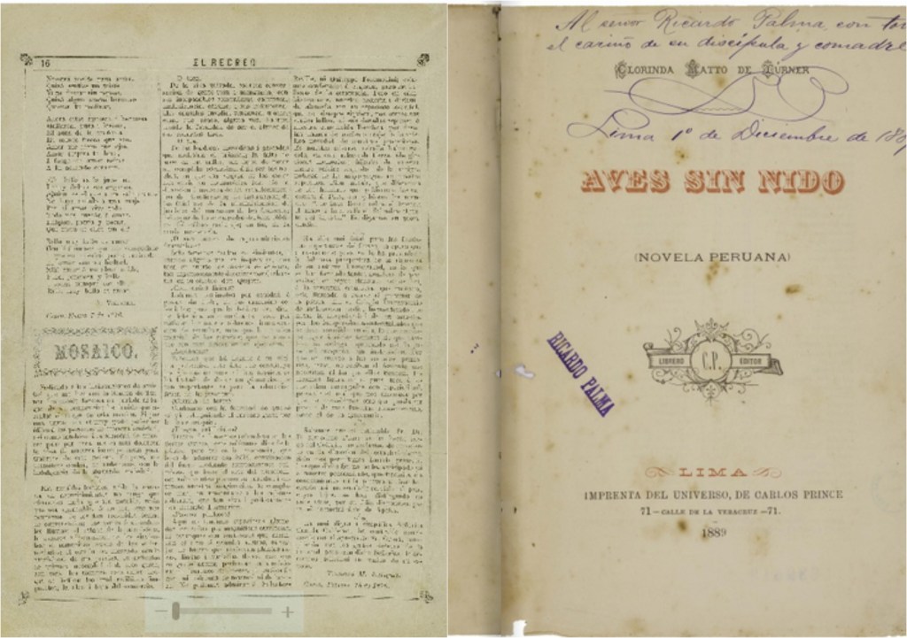Su novela más famosa, “Aves sin nido”, fue considerada muy controversial, el tema es el amor entre un hombre blanco y una chica indígena, que no sabían que eran medios hermanos, hijos del mismo cura, inaceptable para la sociedad de la época, originando que el arzobispo la excomulgara.