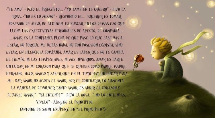 Ella era asmática como La rosa, en el cuento, que tosía constantemente y el principito llevaba un amuleto para que no le pasara nada, es un tributo a su esposa; sus dudas y su infidelidad son el campo de flores que encuentra el príncipe en la Tierra, ella es un personaje como la flor que crece y él la quiere, porque para él, es especial.
