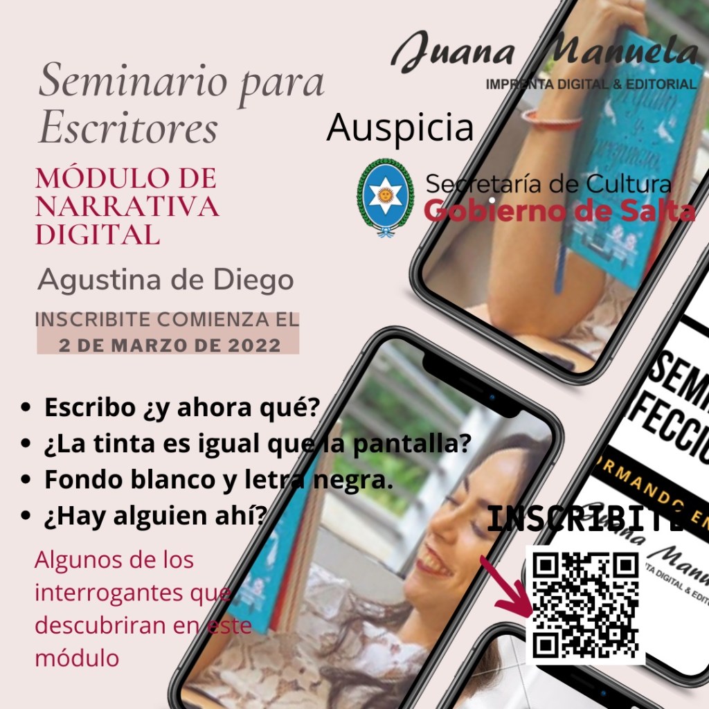 El 2 de marzo inicia el módulo de Narrativa Digital a cargo de Agustina de Diego, dicho módulo forma parte del Seminario para escritores «Formando en Escritura Creativa».