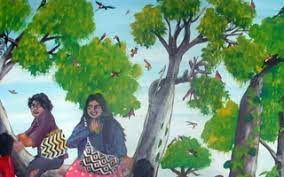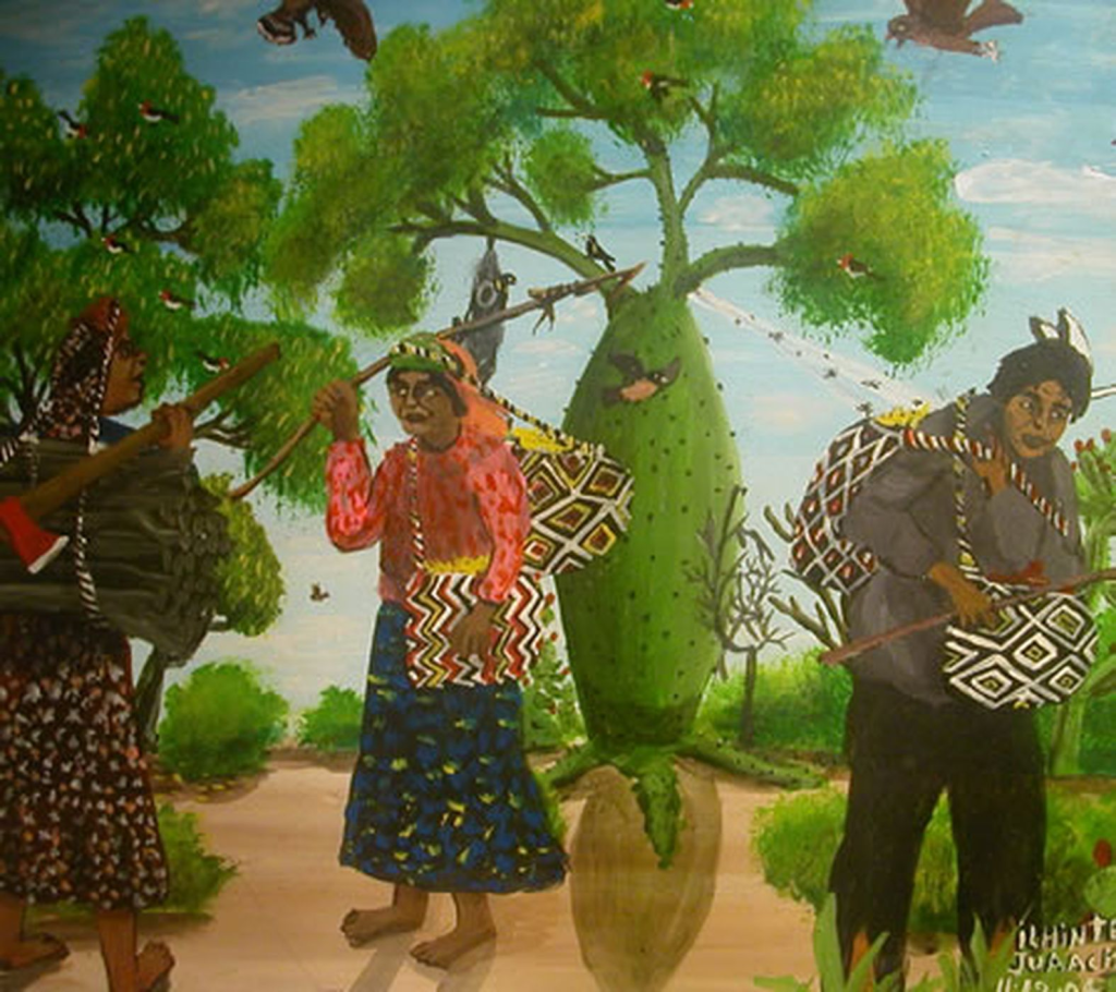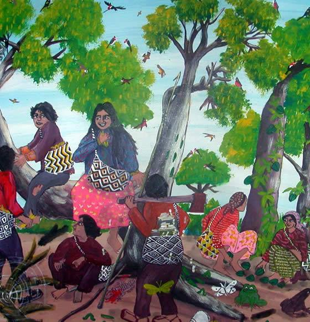 Este es un pueblo cazador-recolector y Litania retrató la situación ecológica de interdependencia con la tierra y los animales.