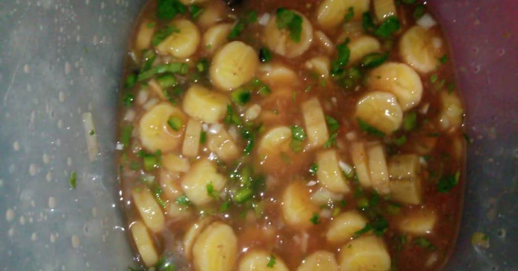 La preparación de la que les hablo es de un ESCABECHE DE BANANA, original y delicioso.
