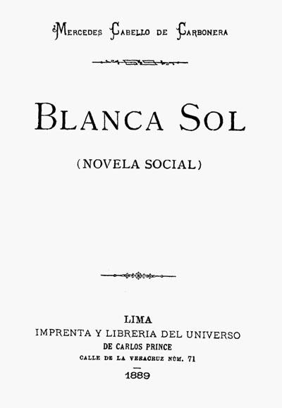 Blanca Sol es la obra más importante de Mercedes Cabello, publicada en Lima, en 1888, ambientada en la Lima del siglo XIX, relata las costumbres y la vida social de la época, la opulencia y la miseria.