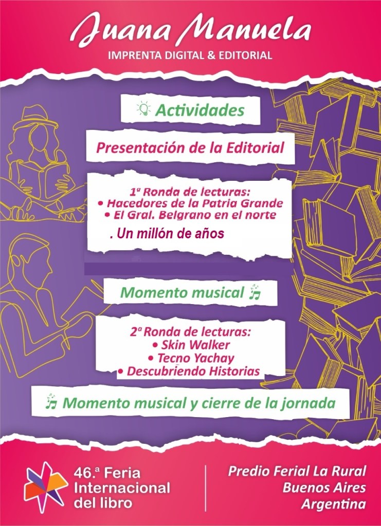 - Presentación de la Editorial y de las Tertulias de Juana Manuela, a cargo de Argentina Mónico y Silvana Irigoyen.