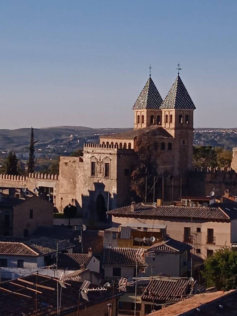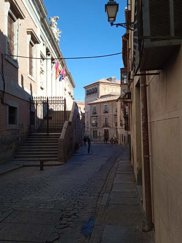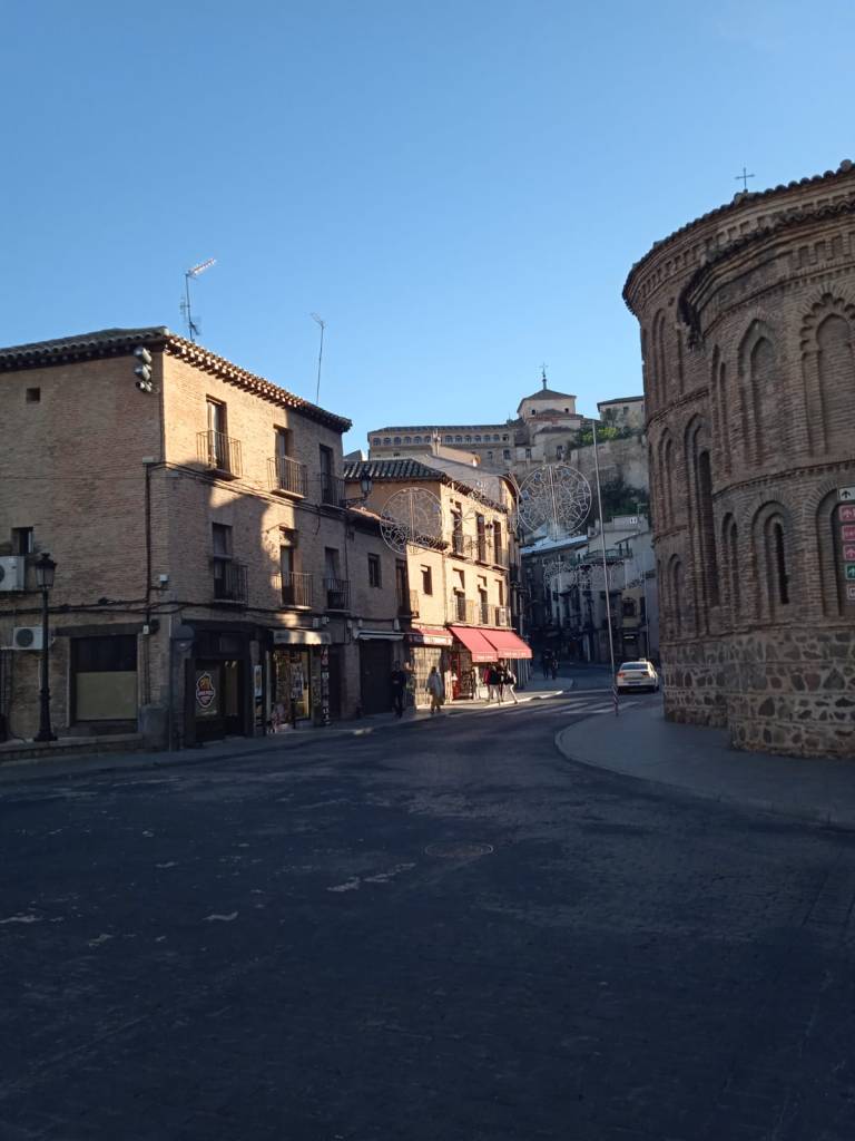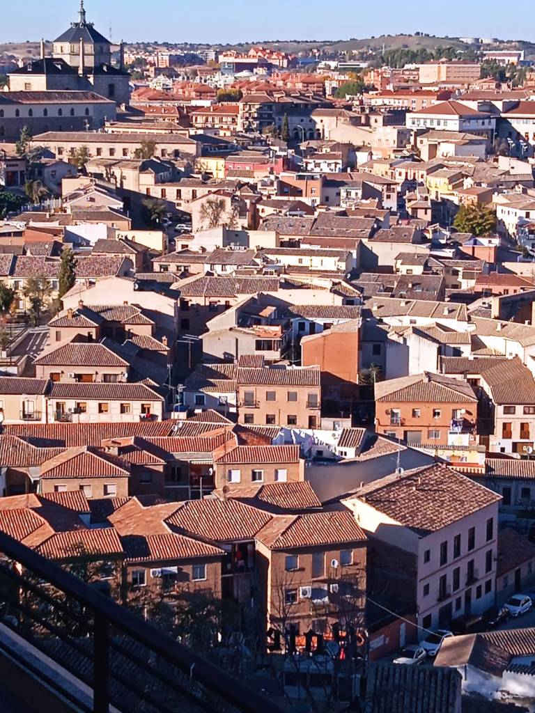 Estoy por los caminos del Quijote de la Mancha, en Toledo a 71 km de Madrid, hace mucho frio. Esta ciudad antigua y maravillosa que se levanta a orillas de Río Tajo, marca enormes contrastes, el desnivel de alturas que envuelve a la ciudad, el turquesa del rio, lo rosa de la ciudad al atardecer, las cúpulas y agujas de las iglesias que al final de la tarde flotan en un silencio absoluto.