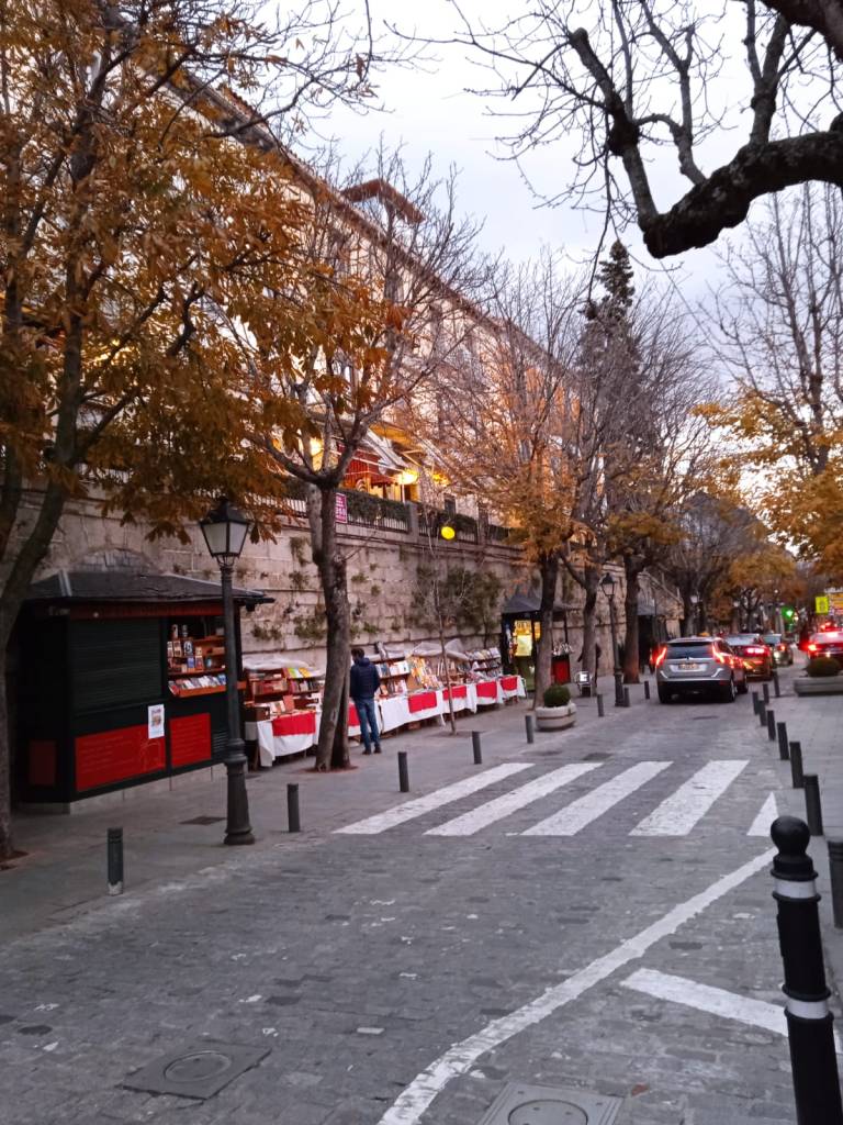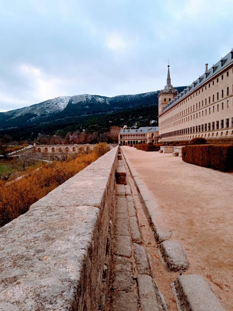 San Lorenzo de El Escorial es un pueblo bellísimo que está rodeado de bosques y montañas. Los bosques tienen muchos senderos por donde podes hacer caminatas o bicicletear y entrar en ese universo que solo la naturaleza sabe cómo contarte una historia de las lindas. Las montañas están nevadas ahora, el sol apenas tibio y la niebla comienza a avanzar después del mediodía.