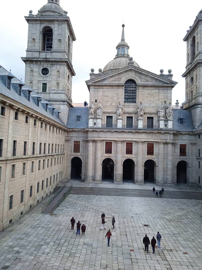 Entrar en EL ESCORIAL, es sentirse pequeño, ínfimo, no solo por sus dimensiones, salas, pasillos y recovecos sino por la enorme altura de sus muros, por la perfección en sus paredes de piedra, sus escaleras, columnas y también por la belleza.