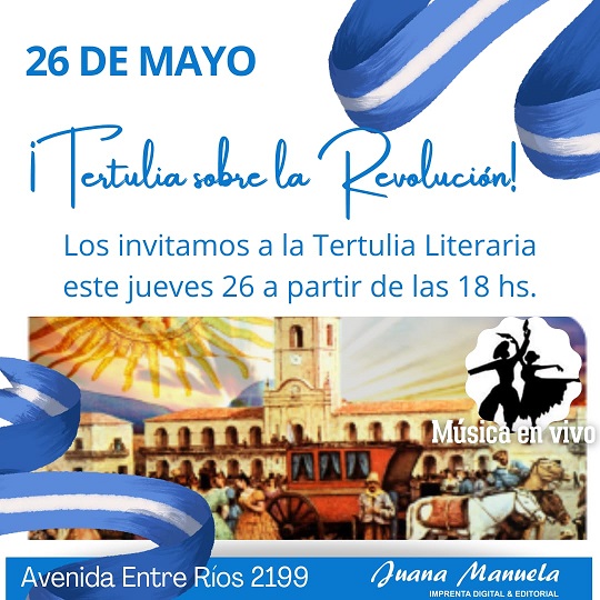 Los invitamos entonces a esta Tertulia literaria, para generar un espacio de disfrute literario, el jueves 26 de mayo a partir de las 18 hs., con entrada libre y gratuita, y también trasmitiremos por Facebook para los que no pudieran asistir.