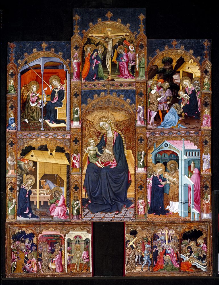 Me declaro profundamente enamorada de LOS RETABLOS de los pintores flamencos, muy antiguos, tallados en madera que muchas veces se ubicaban en las iglesias, el trabajo magistral de la madera tallada, las caritas de cada uno de los que miran desde ese enorme paño dividido en partes, los colores intensos, rojos y verdes, y azules y amarillos, y la perfección del diseño.