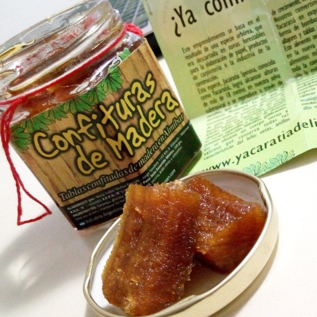 Se trata de un emprendimiento para dar uso a la especie de árbol YACARATÍA, variedad que se encuentra en las rojizas tierras de Misiones, era descartada para la producción de papel, carpintería u otros usos de la madera, encontrando la posibilidad de usarlo en una línea comestible, convirtiendo a este producto en exquisiteces que toman forma de bombones, dulces, bocaditos, alfajores y tablas confitadas.