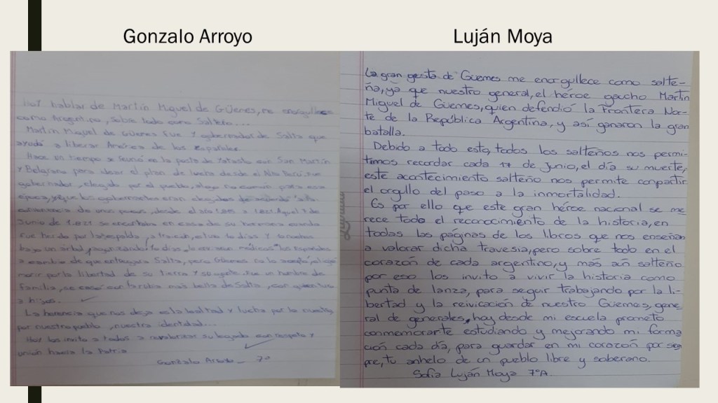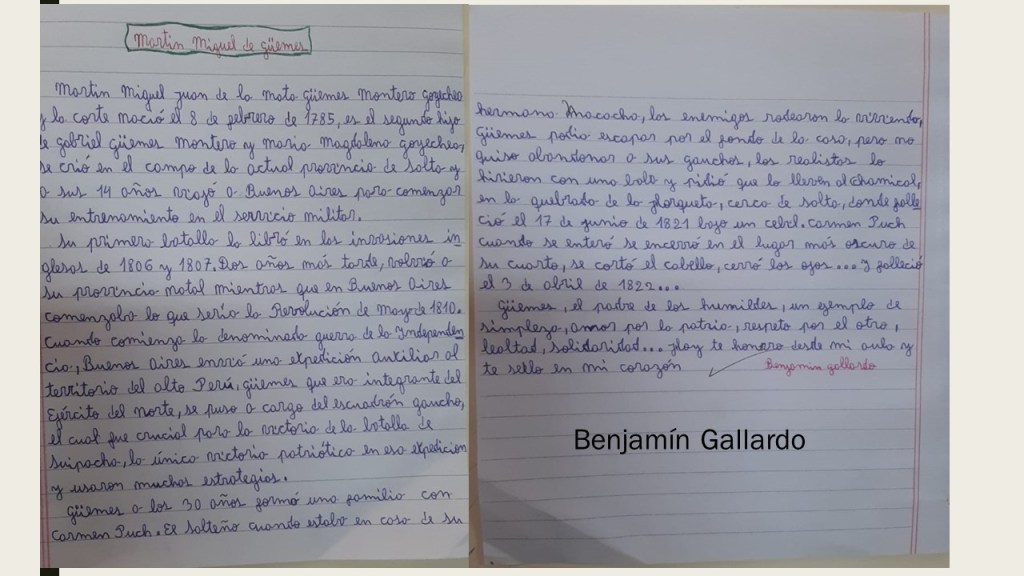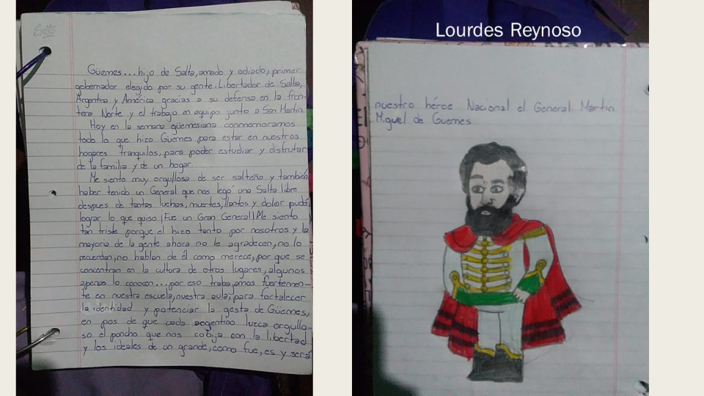 Trabajamos aplicando diversas estrategias para aprender haciendo, y así nace la idea de hacer un artículo que muestre como Güemes impacta en sus aprendizajes, como se apropiaron de los valores emanados de este héroe gaucho, para socializarlo en la comunidad.