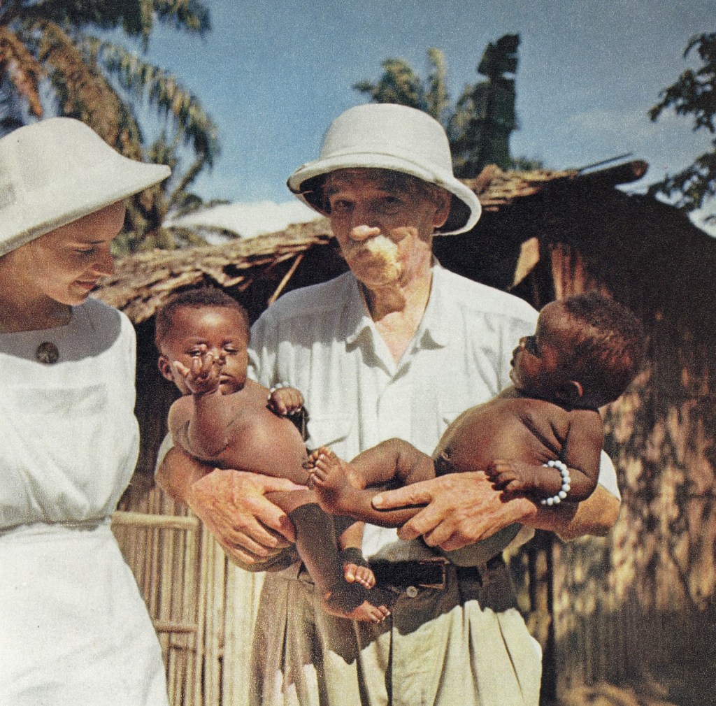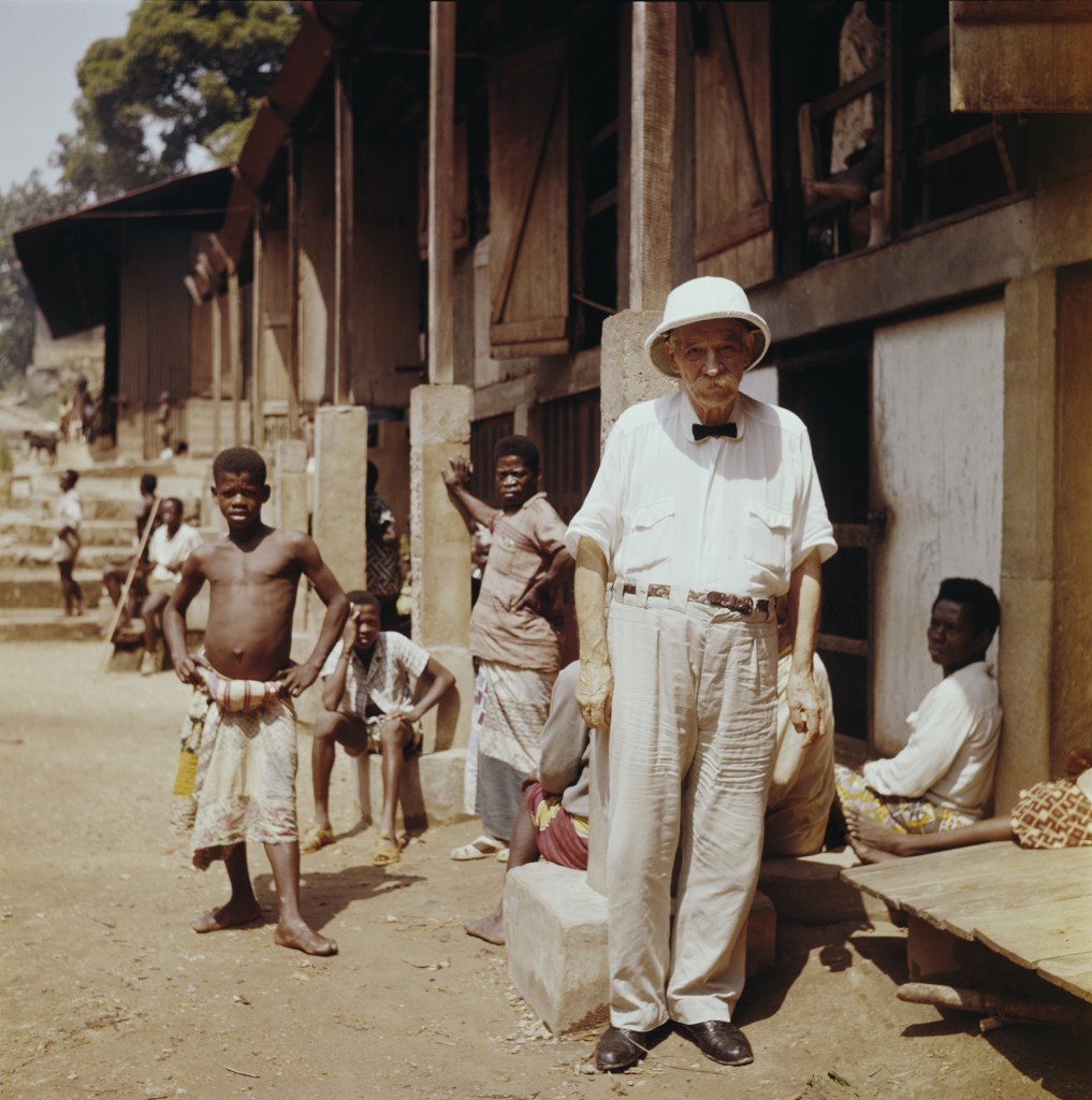 Con su traje blanco, yelmo en mano, el mismísimo Albert Schweitzer viene a darme la bienvenida. Inmediatamente, siento su mirada penetrante pesando sobre mí.