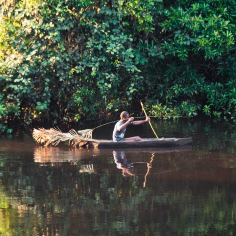 Sin demora, me embarco en una frágil canoa, único medio de transporte que me permite llegar a mi destino final.