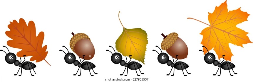 Cargaban algunas, trozos de hojas de morera en sus lomos, asiéndolas; portaban otras, blancos huevos. Las demás, los transportaban hasta el nuevo hogar.