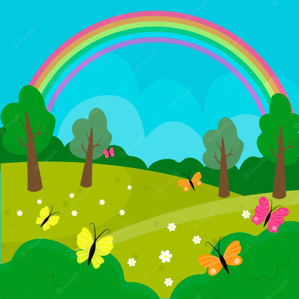Un arco de luz violeta, se insinúa apenas desde un joven riachuelo gárrulo y cantarín y se eleva hacia el cenit hasta perderse tras una verdeante arboleda. Cerca, se