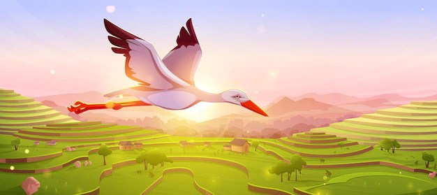La garza, retrasada para volver a su nido emprende el vuelo hacia el valle aún iluminado.