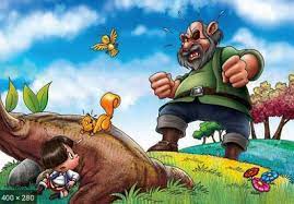 Cuando Tom Thumb’s Ogre descubre a los niños escondidos debajo de su cama, siente un repentino impulso de devorarlos, demostrando así la crueldad del personaje.