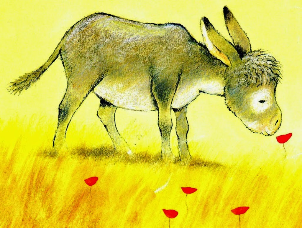 Lo dejo suelto y se va al prado, y acaricia tibiamente con su hocico, rozándolas apenas, las florecillas rosas, celestes, gualdas… Lo llamo dulcemente: “¿Platero?, y viene a mí con un trotecillo alegre que parece que se ríe, en no sé qué cascabeleo ideal…