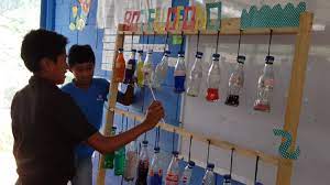 Construyó un botellófono, es decir, un instrumento musical, fabricado con botellas de diversos colores, llenas de agua, hasta determinada parte, y colgadas cada una de una cuerda, a una viga de madera, sostenida por dos columnas, también del mismo material, y con dos bloques rectangulares que le daban sostén.