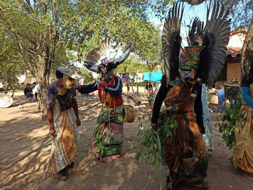 «El ritual es un encuentro de varios mundos (de los vivos, los ancestros, los muertos) desde la cosmogonía guaraní, con una ritualidad, donde máscaras, disfraces, músicos y lo que pueden llamarse puestas en escena, confluyen en un encuentro entre lo sagrado, los antepasados, y lo que llamamos juegos –que no tienen la connotación profana de la palabra–, con representaciones como el jagua-jagua, el toro-toro y los kuchi-kuchi, se mezclan con los agüero y otras formas integradas que confluyen en el espacio, rodeados de una explosión de colores y la música ininterrumpida de las bandas»