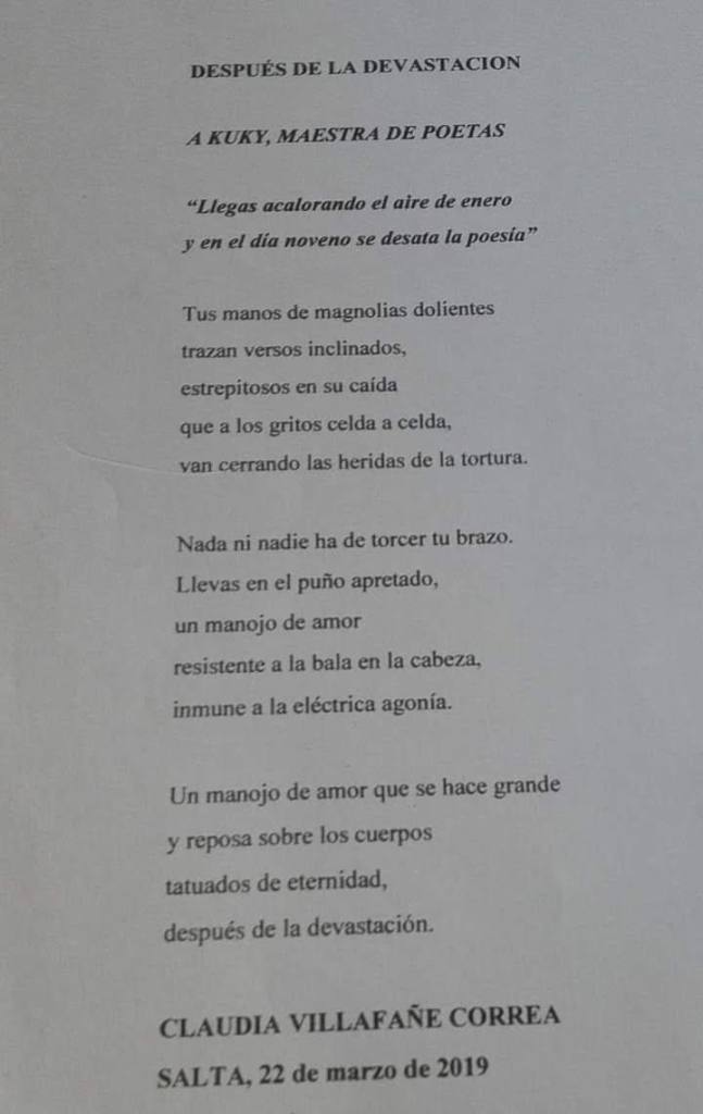 Escribir estas páginas dedicadas a quien considero mi madre de letras, es una suma de emociones mezcladas con gran admiración por Teresa Kuky Leonardi, una mujer que se brindó con la generosidad y el desapego de los grandes, a todos quienes la conocimos y gozamos de su amistad.