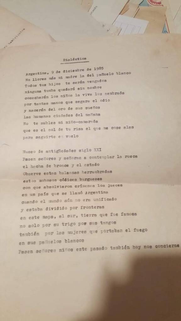 Generosa de su tiempo y siempre activa en su tarea de expandir la poesía dicta talleres de poesía y sostiene que “El poeta no nace, se hace. Si no, no creería en los talleres de poesía. Sería tan antidemocrático pensar que alguien ha nacido con el don especial y el otro no”, dice.