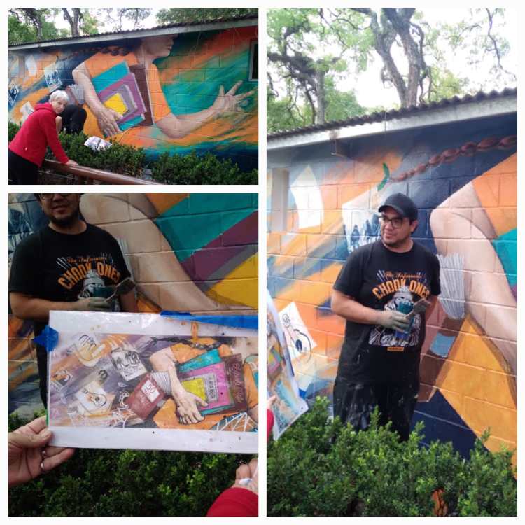 Patricio Albornóz es chileno, vino especialmente invitado para la Feria del Libro, y conjuntamente con otros colegas, estuvieron trabajando con su arte para dejar su impronta.