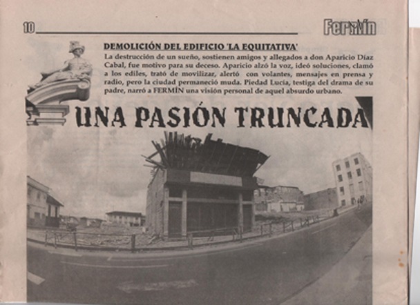 En 1977 fracasó una cruzada emprendida por Aparicio Díaz Cabal, para evitar la demolición del edificio donde tenía la Funeraria La Equitativa, situada en la carrera 22 entre calles 31 y 32 (sector de Fundadores), en Manizales.