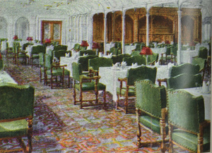 Los pasajeros de esa sección, ese día comieron arenques de Falmouth, riñones de buey a la parrilla y tocino, salchichas a la parrilla y puré de papas, jamón a la parrilla y huevos fritos, bollos de soda, pasteles de trigo sarraceno y sirope de arce. No faltó té, café, mermelada y fruta.