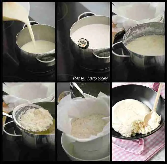 Poner a hervir un litro de leche, una vez que está en ebullición, retirar, agregar inmediatamente el jugo de un limón. Dejar enfriar, colocar un paño sobre un colador, volcar la leche (que ya tendrá el suero separado), dejar escurrir (siempre en la heladera), de esa manera estará en unas horas lista para usar.