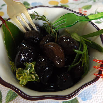Las aceitunas estilo  griegas  son negras,  maduradas en planta y  luego secadas al sol, lo que hace que tengan un aspecto deshidratado, de  muy buen sabor, se preparan con aceite y especias al gusto.