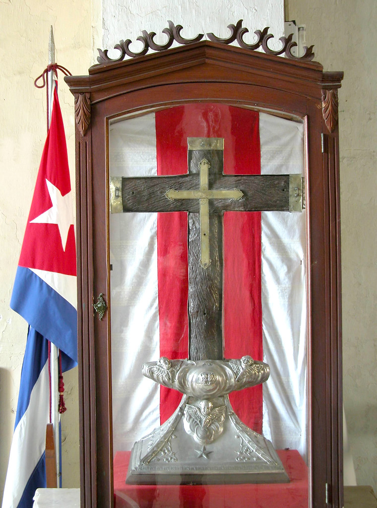 El 27 de noviembre de 1492 Colón, llegaría a territorio cubano, una tierra que identificaría más tarde como la más hermosa que ojos humanos hayan visto. Había navegado con la intención de demostrar la hipótesis de que se podía alcanzar el lejano oriente o las Indias desde Europa viajando por el Océano Atlántico hacia el oeste. Plantada por Colón durante su primer viaje (el 1 de diciembre de 1492) en aquellas costas de Cuba, está considerada la más antigua reliquia histórico-religiosa del llamado «encuentro de las culturas europeas y americana«. «Asentó una cruz grande a la entrada de aquel puerto que llamó Porto Santo, sobre unas peñas vivas», escribió Fray Bartolomé de las Casas de aquel día, el cuarto después de su arribo a tierras baracoesas. Es posible que con ella Fray Bartolomé realizara oficios, aunque no se ha encontrado la documentación justificadora de que la primera misa dada en Cuba la hiciera con ella el «protector de los indios». Veinte años después de haber sido plantada, el capitán Diego Velazquez quien acompañó a Colón en su segundo viaje, redescubrió la cruz, en perfecto estado, y en ese lugar fundó en 1511 la primera villa de Cuba, bautizada como Nuestra Señora de la Ascensión de Baracoa.