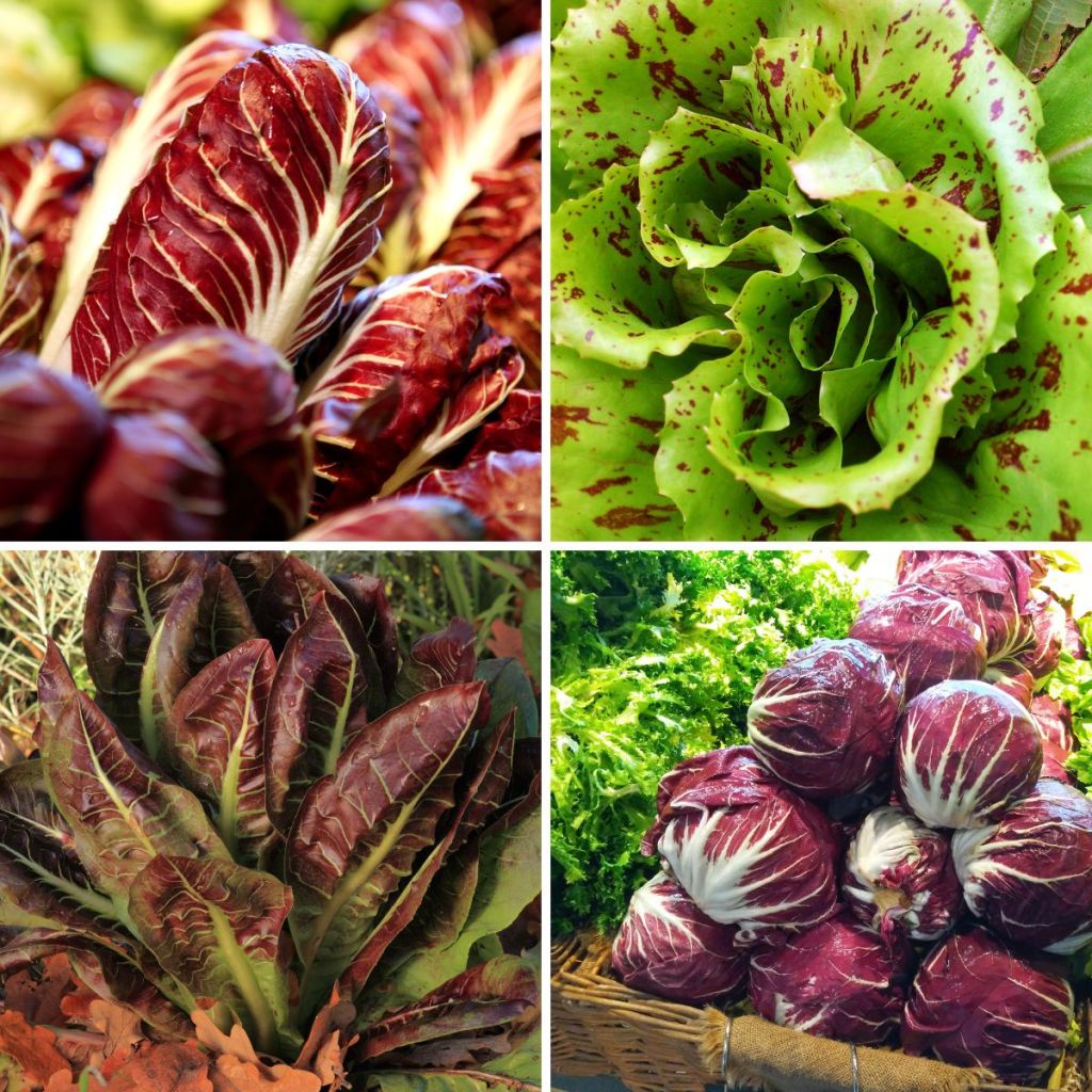 Es una variedad de la achicoria común, pero cuyas hojas son de color blanco y rojo intenso o morado, y de sabor más amargo y picante que aquélla.